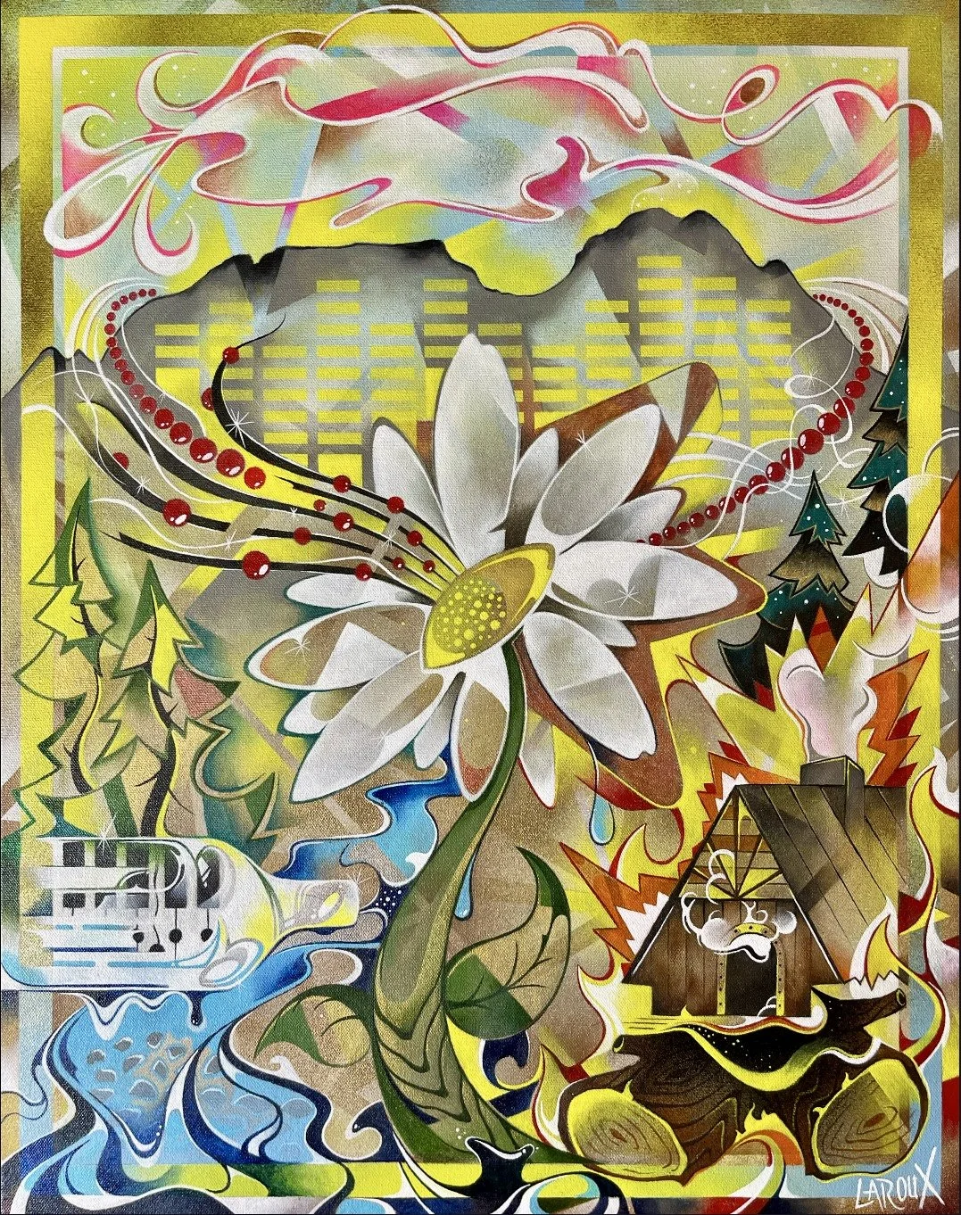 The artwork Japan was born from LAROUX’s first journey to Japan in February 2025. Beginning in Tokyo, the city’s pulse set the tone before an inspiring bullet train ride past the majesty of Mount Fuji, a moment etched into the artwork’s spirit. The serene temples of Kyoto and the enduring strength of Osaka Castle added layers of history and reverence, grounding the piece in centuries of artistry and architecture. The journey culminated in Hokkaido, where the exhilarating energy of snowboarding across pristine mountain terrain fulfilled Laroux’s life long dream. Collectively, these moments fused into a singular vision—Japan—a tribute to the beauty, diversity, and transformative power of the country’s landscapes and culture.